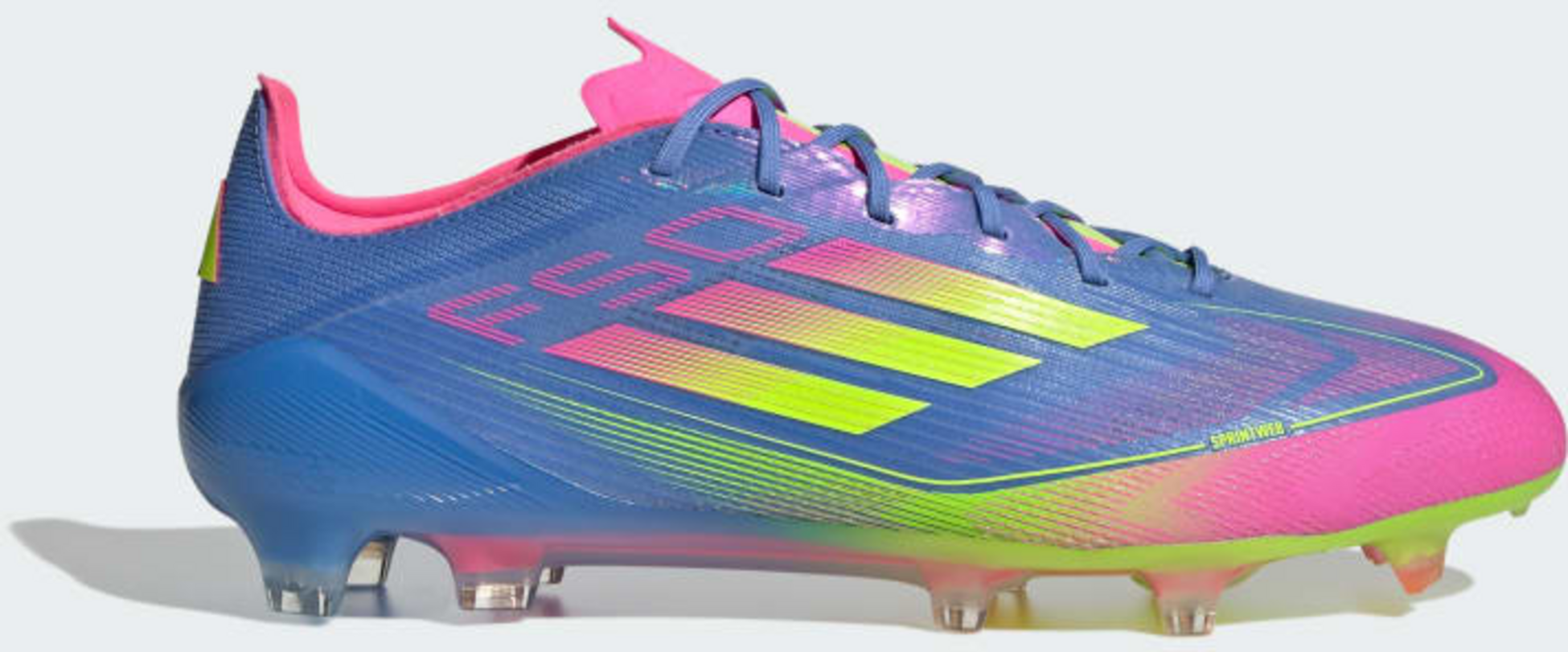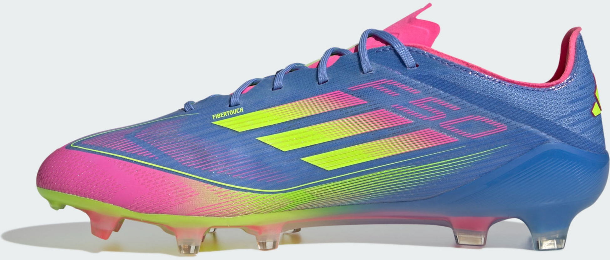 Push your pace to the limit in lightweight adidas F50 footwear engineered for speed. These Elite football boots have a thin Fibertouch upper with a Compression Fit Tunnel Tongue for lockdown and a Sprintweb 3D texture to help keep the ball close when you're flying. Designed for firm grass pitches, the springy Sprintframe 360 outsole delivers serious acceleration.