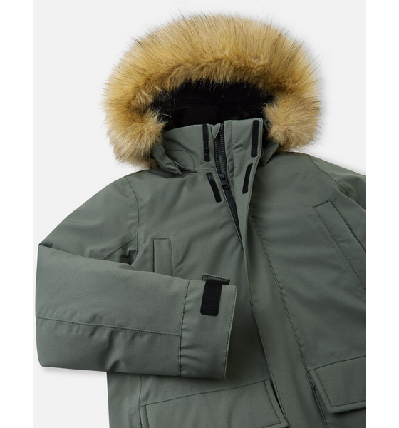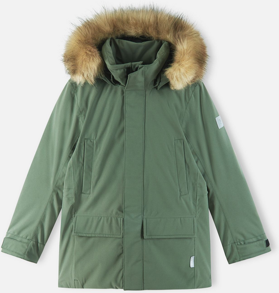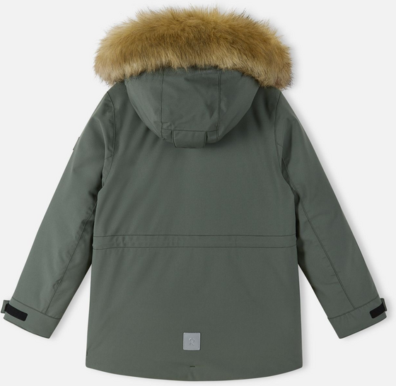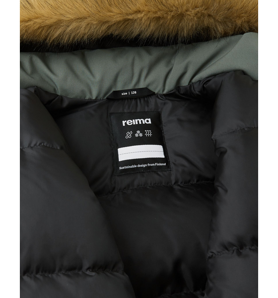 Reimatec-untuvatakki Serkkula on suunniteltu lasten talvisiin seikkailuihin. Takki on valmistettu vedenpitävästä ja hengittävästä kankaasta, joka hylkii vettä ja likaa. Kaikki saumatkin on teipattu vedenpitäväksi, joten lapsesi pysyy kuivana joka säällä. Takin untuvaeristys on erinomaisen lämmin, ja säädettävät hihansuut pitävät tuulen loitolla. Pidempi malli suojaa selän ja takamuksen, ja sileä vuori helpottaa pukemista. Suojaava huppu, jossa on irrotettava tekoturkissomiste, on myös turvallinen: huppu irtoaa, jos se jää johonkin kiinni. Takissa on myös vetoketjutasku sivussa sekä lepotaskut ja neppareilla suljettavat läppätaskut edessä. Sisältä säädettävä vyötärö varmistaa hyvän istuvuuden.