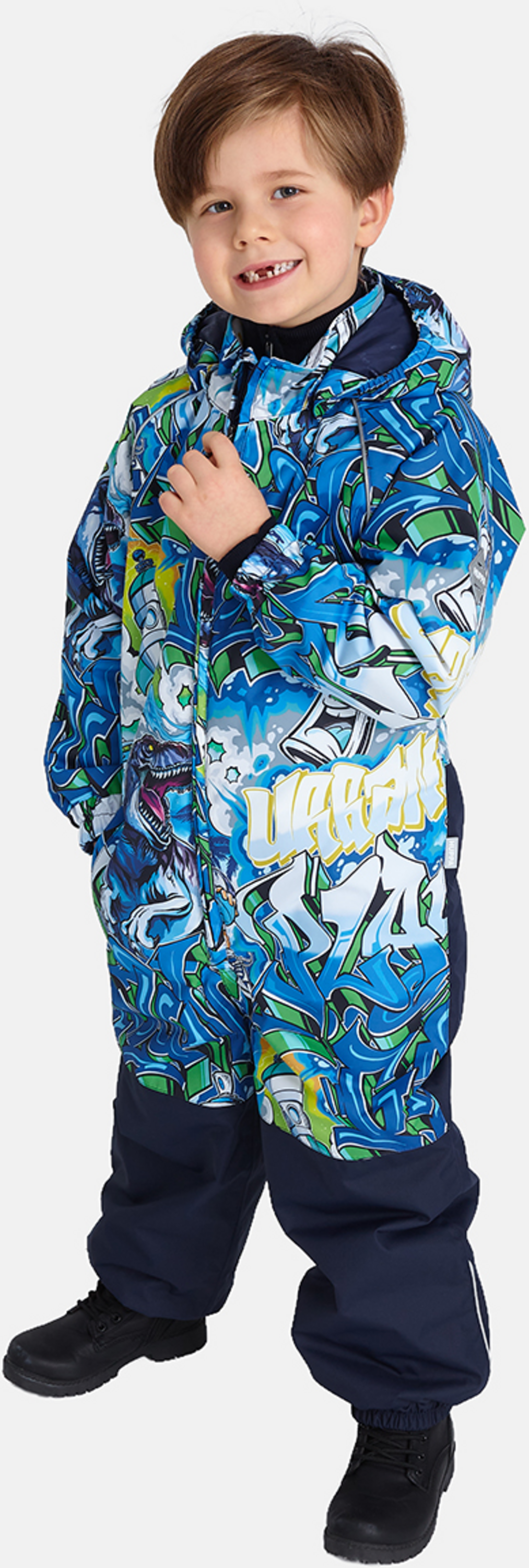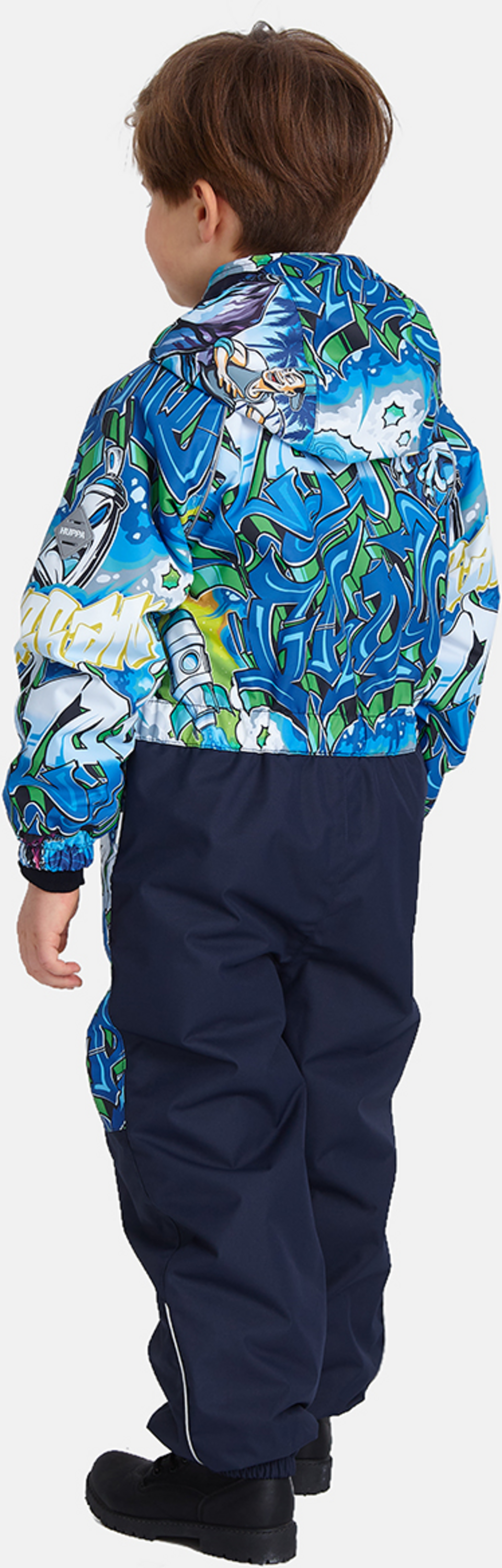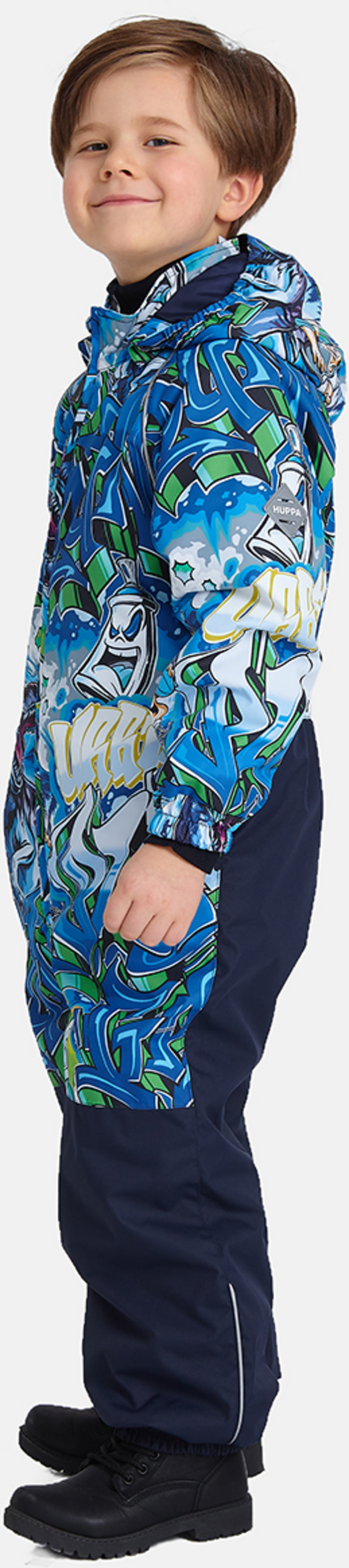 Lasten veden- ja tuulenpitävä kevät- ja syyshaalari. 40 g:n eristys. Hengittävä ulkokangas. Kuminauha vyötäröllä, hihan- ja lahkeensuissa sekä hupun reunassa. Irrotettava huppu kiinnitetään kaulukseen vetoketjulla. Väriin sopiva napinlävellinen kuminauha. Vedenkestävät teipatut saumat. Tuotteessa on joustavat jalkaremmit. Heijastavia yksityiskohtia.