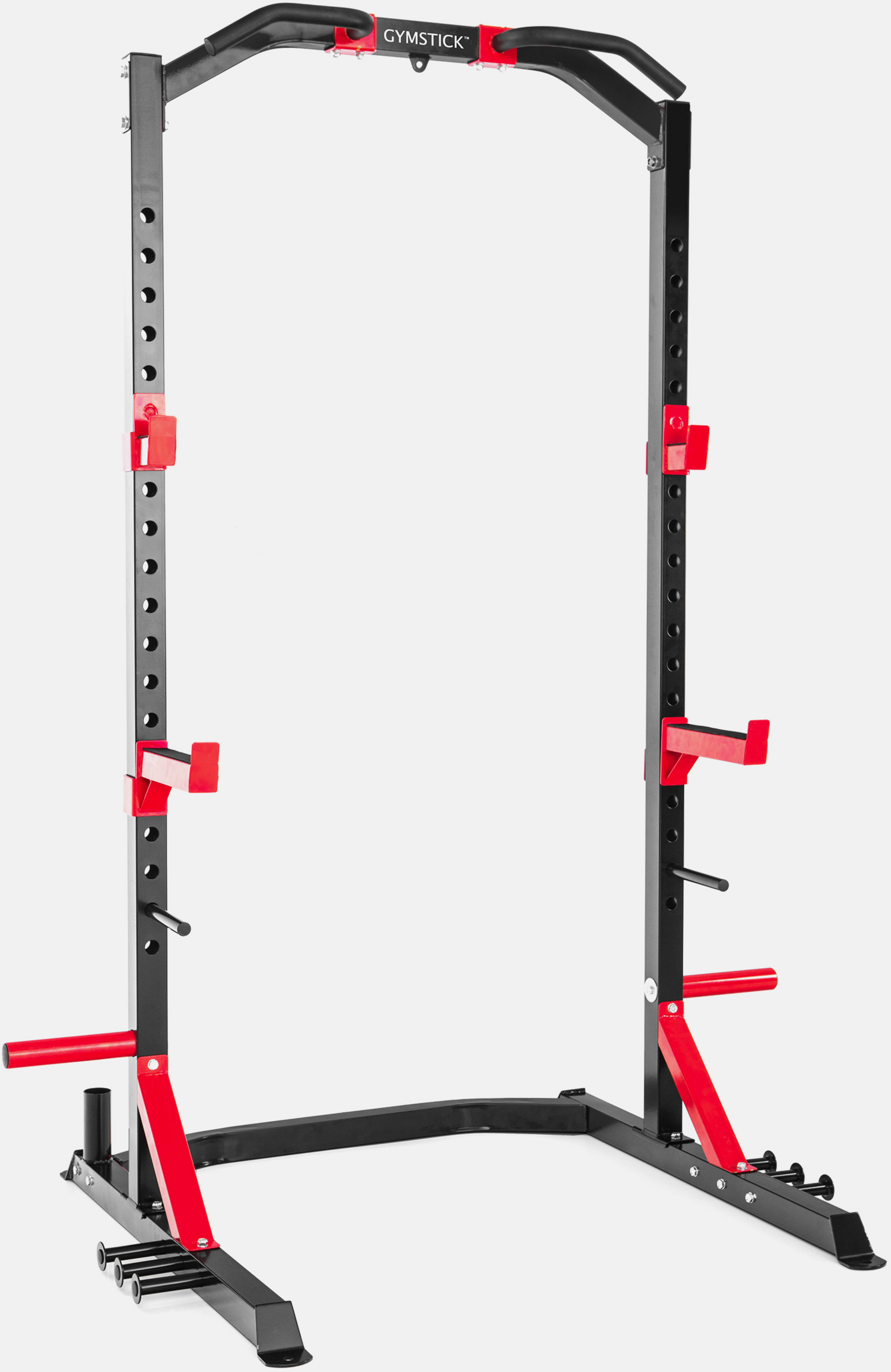 Gymstickin laadukas Half Power treenikehikko, johon sisältyy korkeussäädettävät tankopidikkeet, turvatelineet, tangon säilytysteline ja levypainojen pidikkeet (30mm sekä 50mm levypainoille). Turvatelineet antavat varmuutta mennä uudelle tasolla ilman huolta vahingosta raskaiden painojen kanssa. 20 korkeussäätöä tangolle, power band kuminauhojen tukitangot ja moni-ote tanko leuanvetoon antavat entistä enemmän monipuolisuutta harjoitteluun.